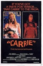 . Carrie is wearing an all white dress which symbolises purity and is common in horror films.